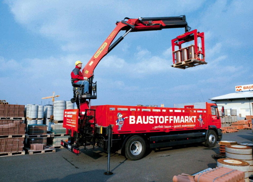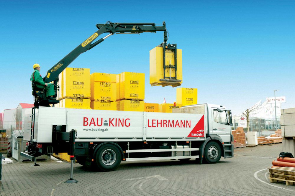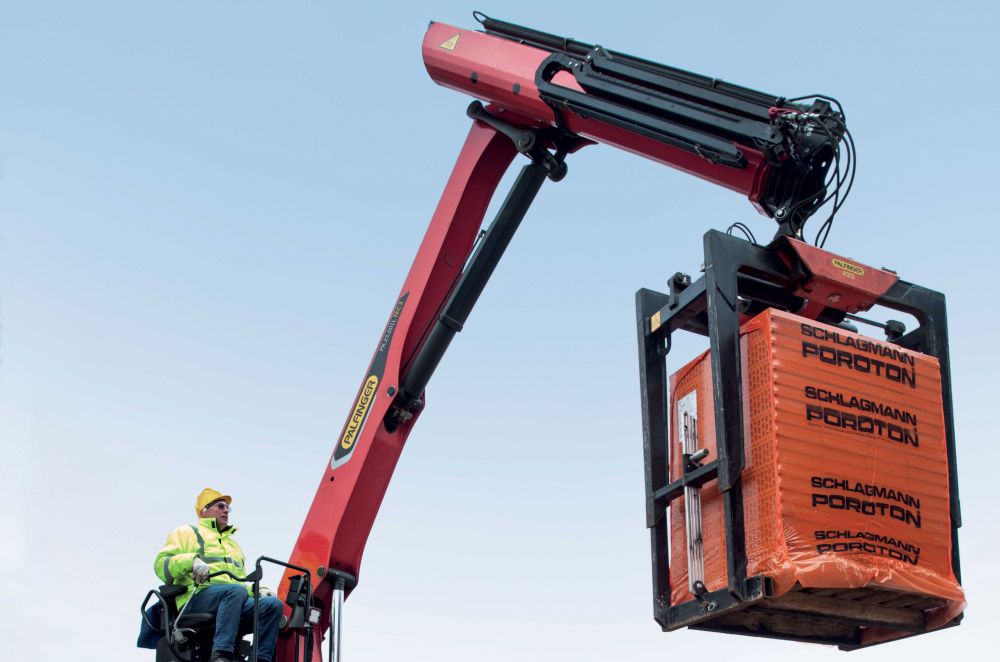 Le gru L della PALFINGER sono state sviluppate specialmente per la movimentazione di materiali edili su pallet. Attrezzate con il giusto equipaggiamento – una pinza per mattoni o una forca – queste gru rispondono a qualsiasi loro utilizzo con la massima efficienza. La loro altissima velocità di lavoro garantisce una movimentazione veloce ed economica dei materiali edili.